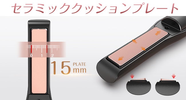 15mm幅プレートは操作が便利で、初心者も適しています。ショートヘア、前髪、ロングヘアなど多くの髪型が使用できます。どの角度で挟んでも、プレートが上下に動き、左右にも回転するから、すき間なく髪にフィット。