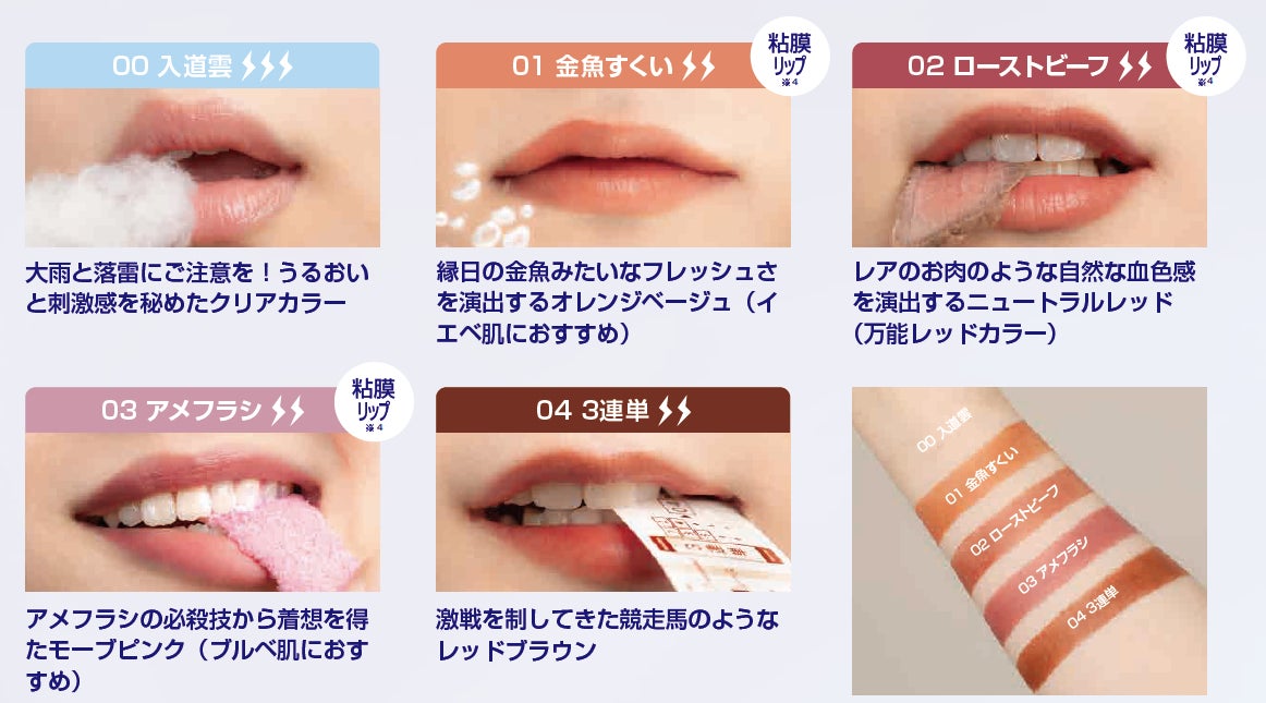 株式会社クラブコスメチックス(本社・大阪市 代表取締役社長:中山ユカリ)は、t8k(テイトク)シリーズから、2023年11月4日(ロフト先行発売2023年9月1日)より、雷からインスピレーションを得たプランプ成分※1 を配合したスティックタイプのリップ「 t8k カミナリップ」(1 品 5 品種 税込 1,650 円)を発売いたします。