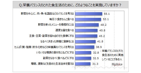 栄養バランスのとれた食生活のために実施していること