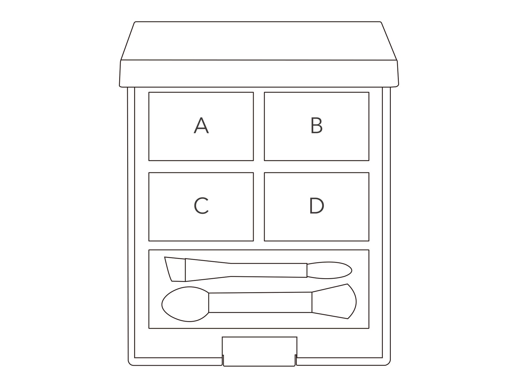 人気のヴァティック アイズと同じ処方の限定色。くすみを払い目元を明るく整えるA色と、リッチに輝くゴールドのグリッターのB色だけで仕上げたり、D色の2色を加えて奥行きのある目元に仕上げたりと、気分やファッションに合わせて幅広いメイクを楽しめます。