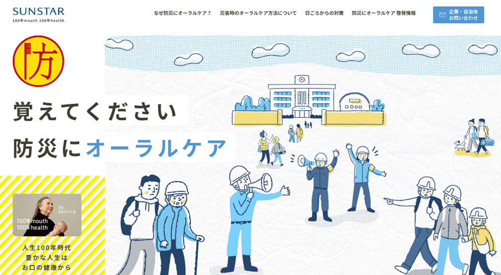 サンスターでは、「防災にオーラルケア」を掲げ、災害時のオーラルケアの重要性について2011年から10年以上啓発を続けてきました。本リニューアルでは、防災に関連する様々な情報をより分かりやすく、必要な情報にたどりつけるようサンスターが発信する情報を集約するとともに、最新情報を追加し、コンテンツを充実させました。