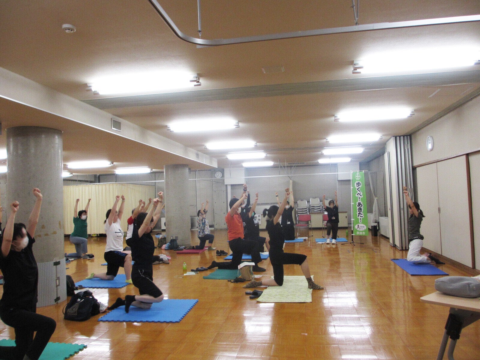 イベント開始に先駆けて、2023年8月23日(水)には、健康運動指導士を講師に招き「効果的なウォーキングのための体づくり」をテーマとしたスタートイベントが秋田市保健センターで開催され、体づくりを促す姿勢筋コンディショニングや正しい歩き方についての運動講習のほか「歩くべあきた」のルール説明も行われました。
