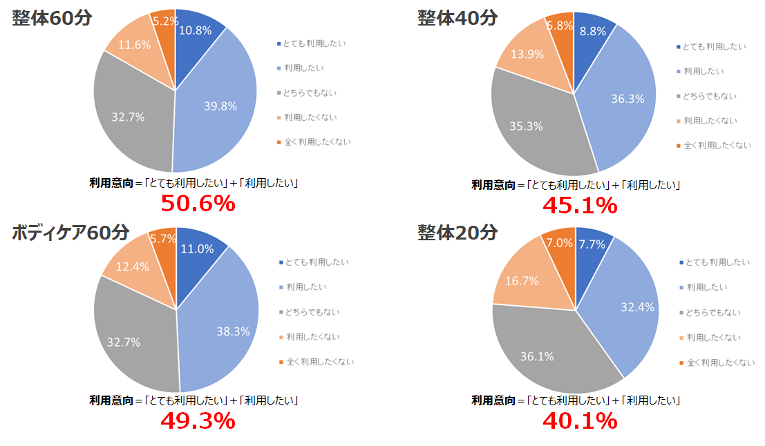 コースの利用意向について外部調査を実施、整体60分コースに続いて利用意向が高かったのがボディケアコースだった