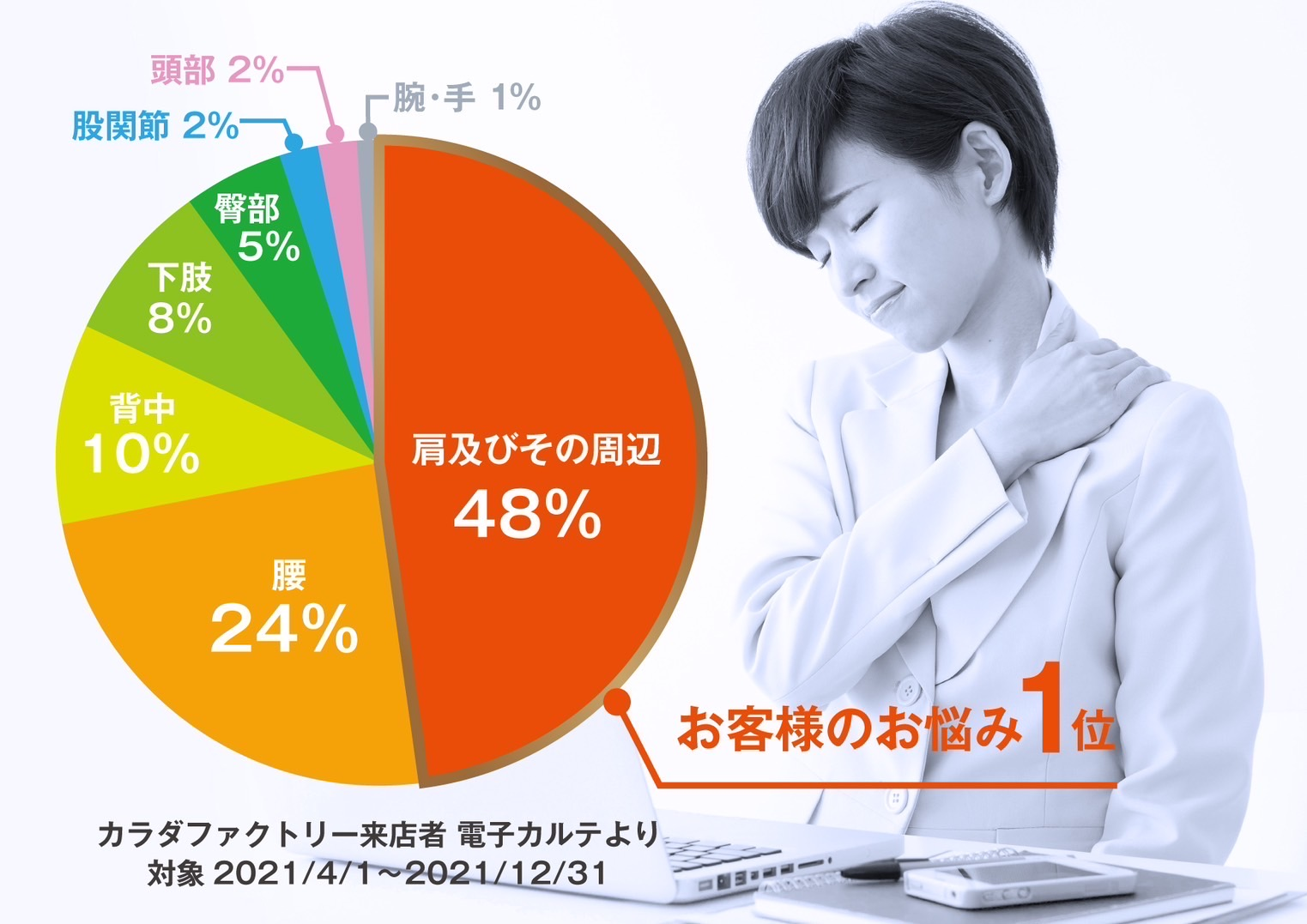 ※全国のカラダファクトリーにおいて、2021年にご来店のお客様の電子カルテ情報より。