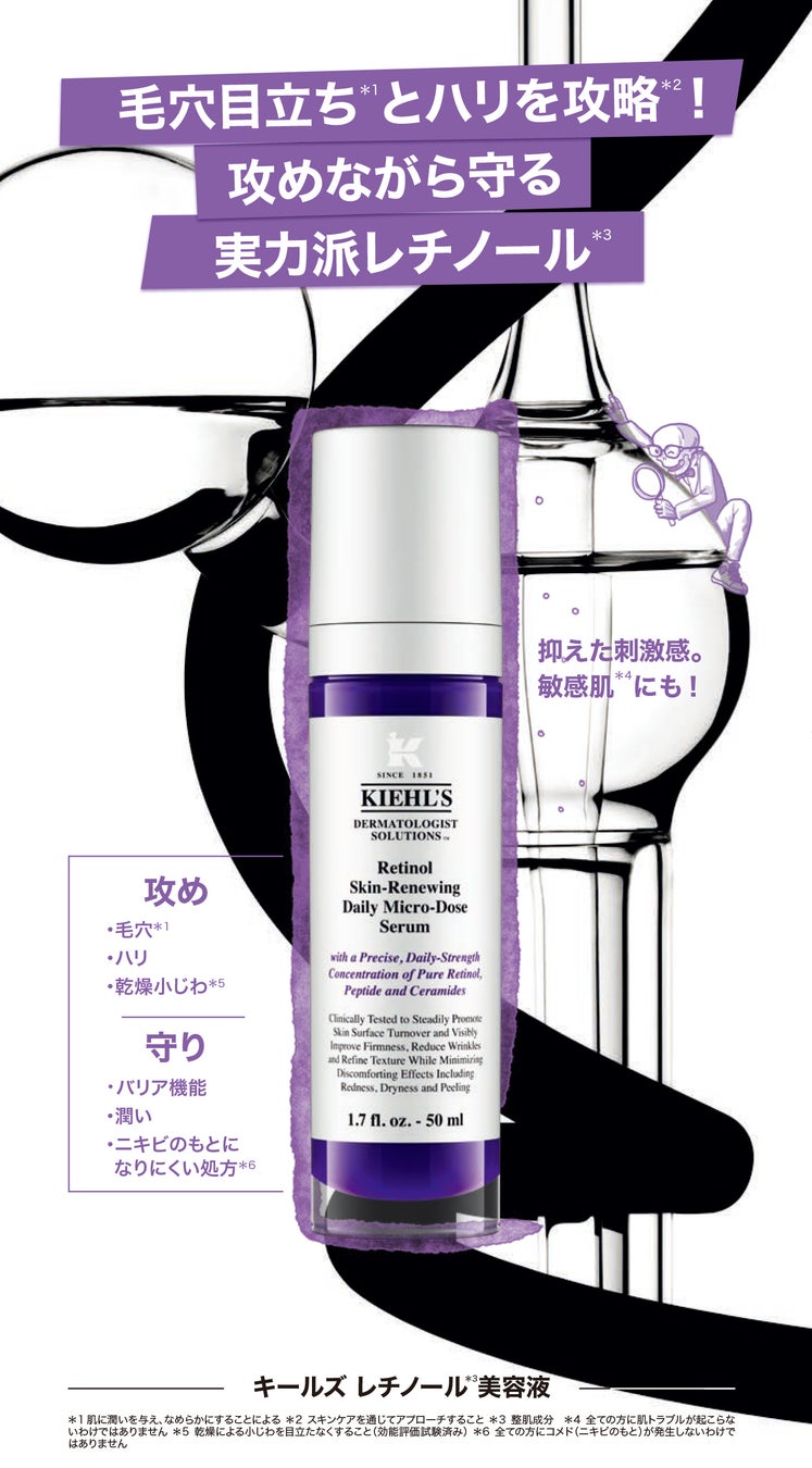 ■毛穴目立ち*1とハリに攻めの攻略*2!「キールズ レチノール*3美容液」