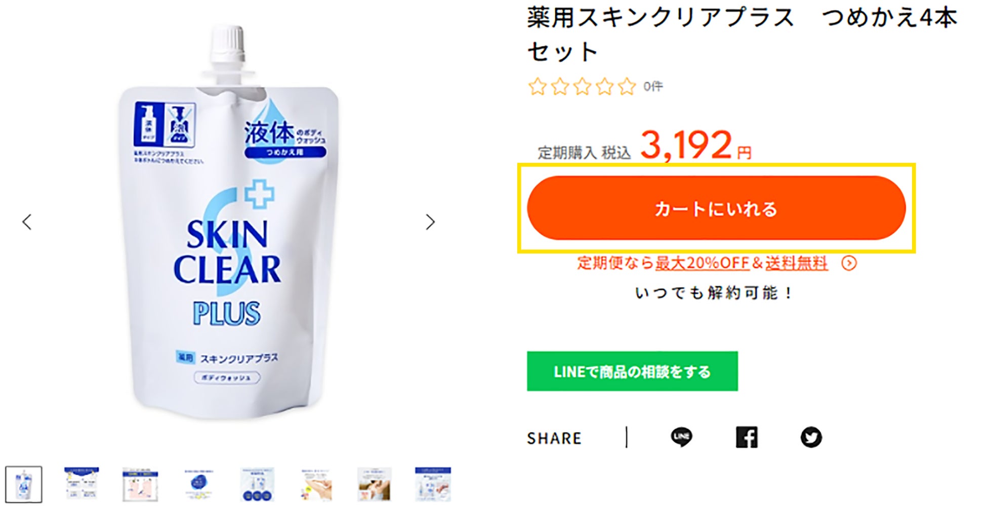 ご注文窓口 0120-43-2828(受付時間 9:00-17:00/土日祝日、当社休業日を除く)にお電話いただき、オペレーターに薬用スキンクリアプラスまたは薬用泡スキンクリアプラスのどちらのおまとめ定期便をご希望かをお申し付けください。
