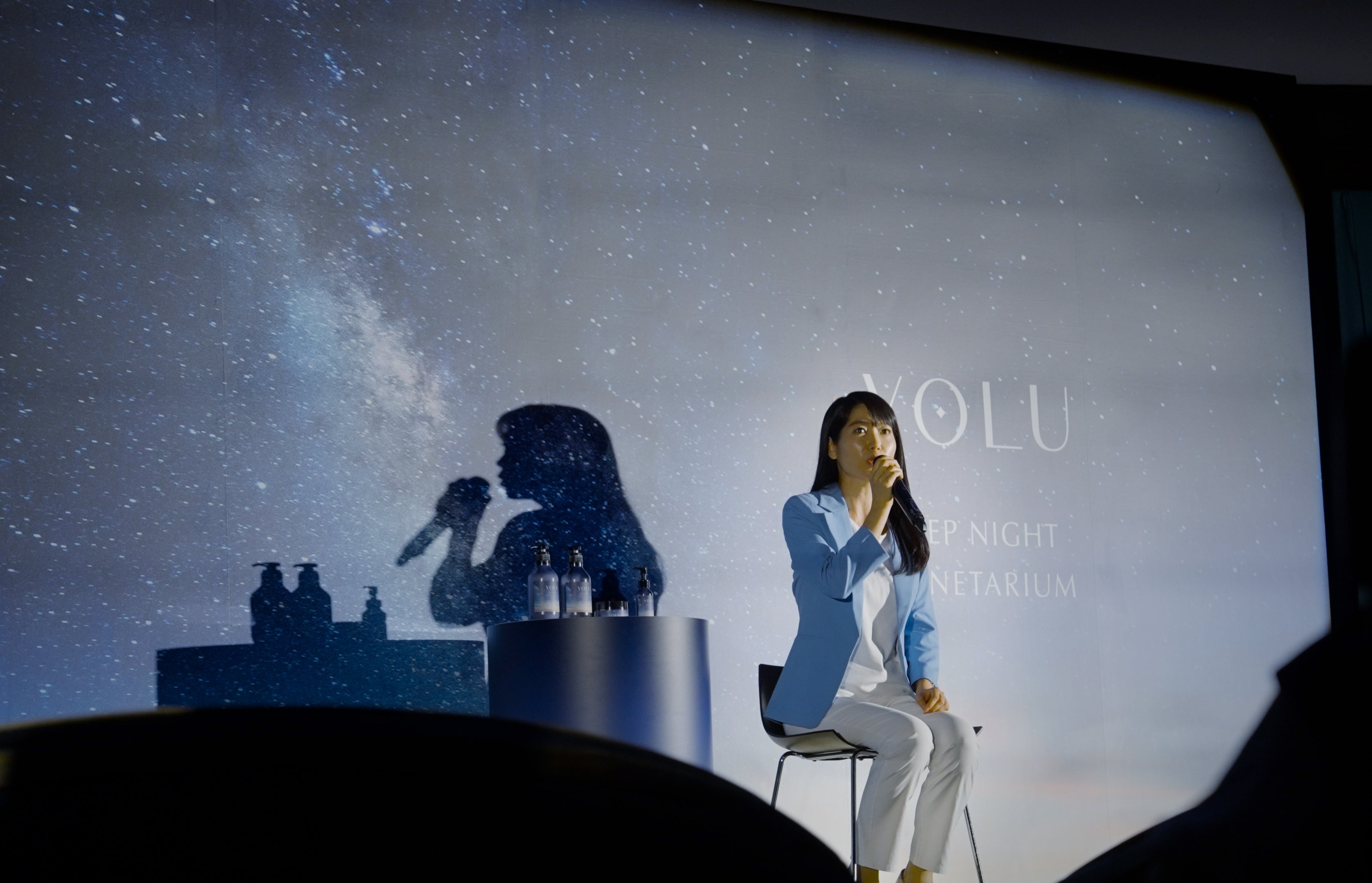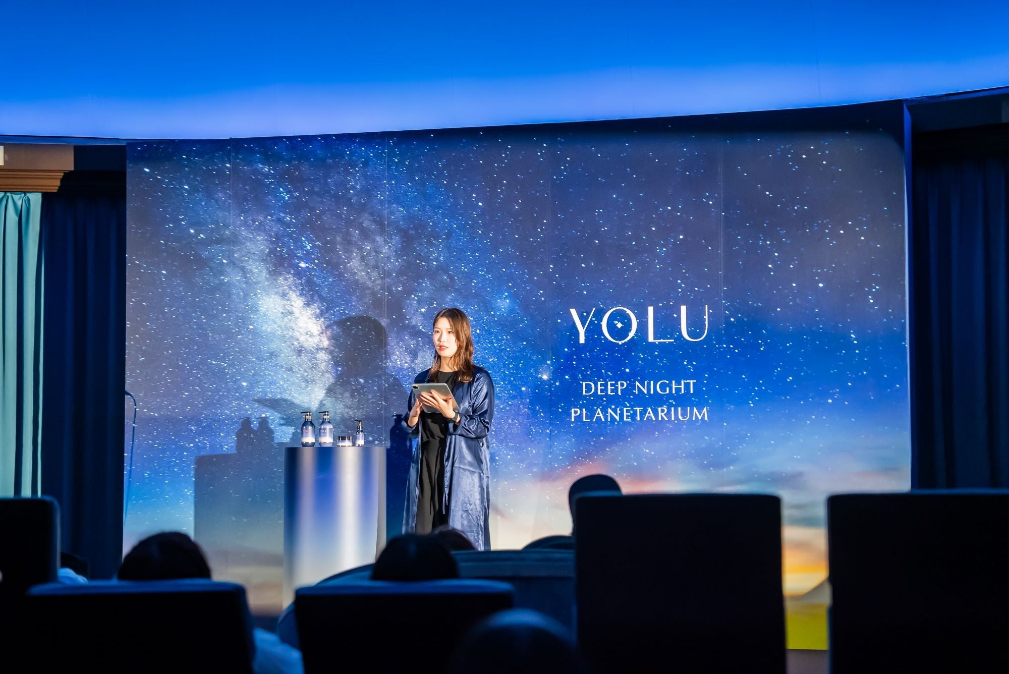 また、新商品発表会をより楽しんでいただけるよう、「YOLU」オリジナルのプラネタリウムプログラムとして、美容の星と言われるヴィーナスを表し、日本では「宵の明星」とも言われ夜間美容への切り替えとともに輝く金星が美しい星空を披露しました。