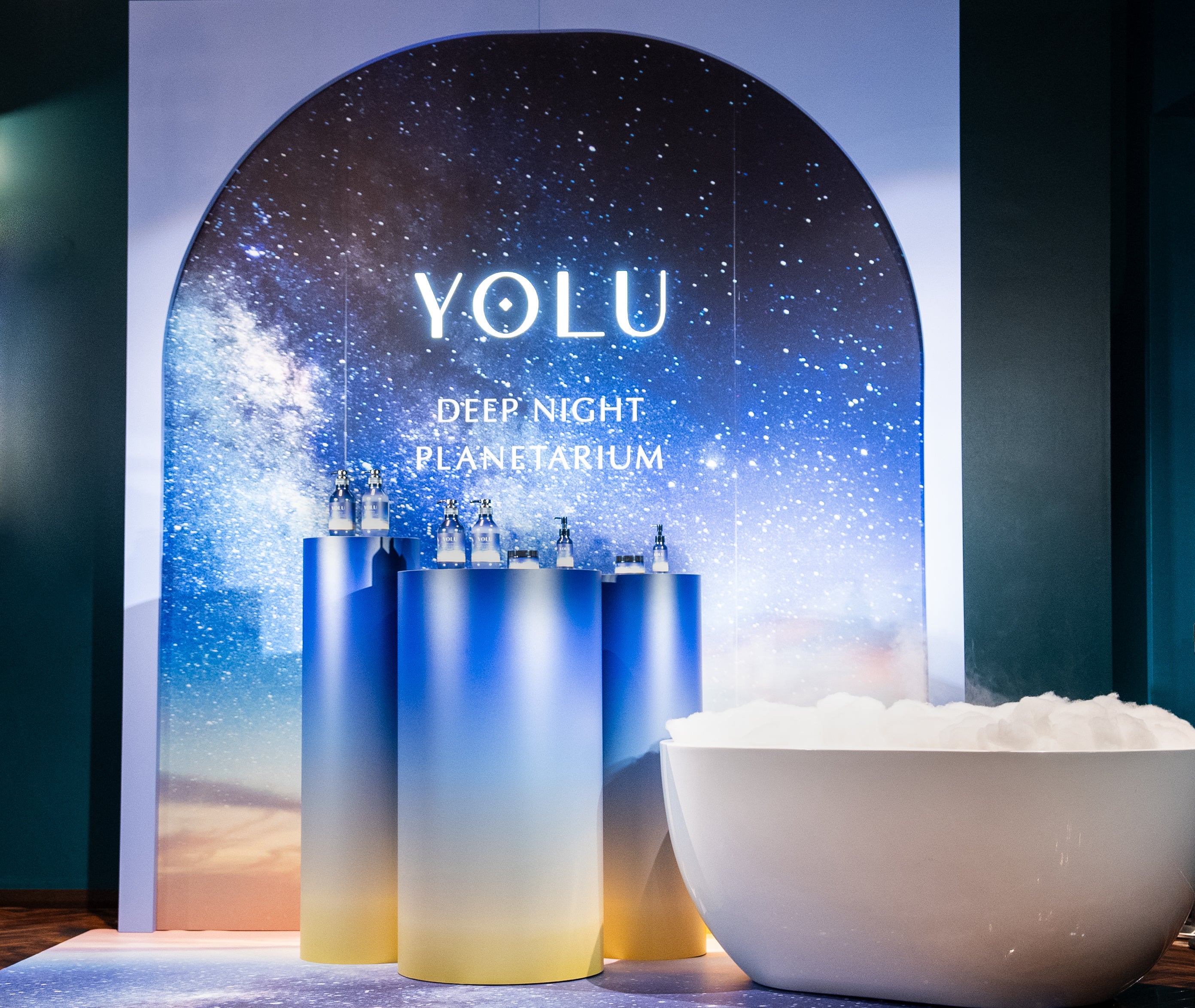 「YOLU ディープナイトリペアシリーズ」新商品発表会では「YOLU」が提唱する夜間美容の世界観を体感していただけるよう、新シリーズ「ディープナイトリペアシリーズ」の香りに包まれた満天の星空の下で開催しました。