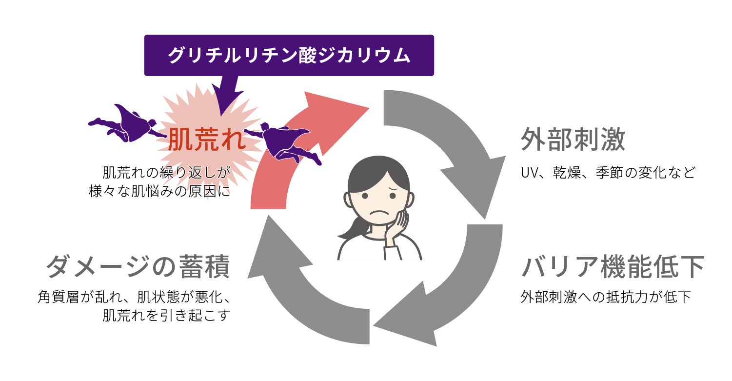 角質層とバリア機能を守り、美容成分が角質層まで浸透しやすい肌に導きます。肌悩みの悪循環を止める働きをサポートすることによって、うるおったコンディションの良い肌へ。