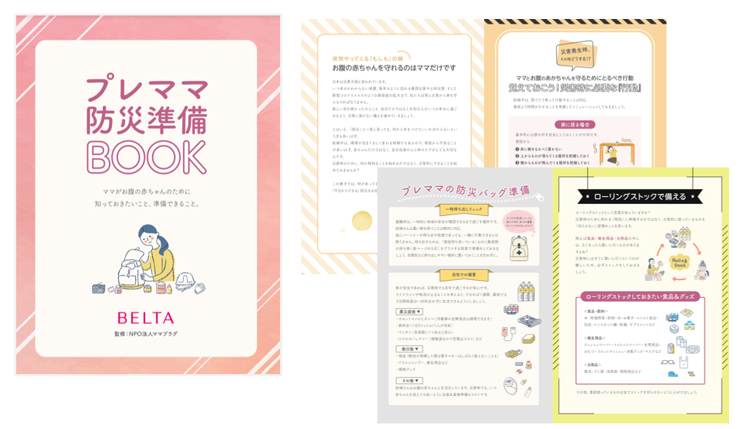 災害をなくすことはできませんが、事前に防災準備をしておくだけでも不安を軽減することができます。女性ライフステージの課題解決に取り組むBELTAは、SDGs活動の一環として、アクティブ防災を提唱し活動するNPO法人ママプラグ監修のもと「プレママ防災準備BOOK」を制作しました。