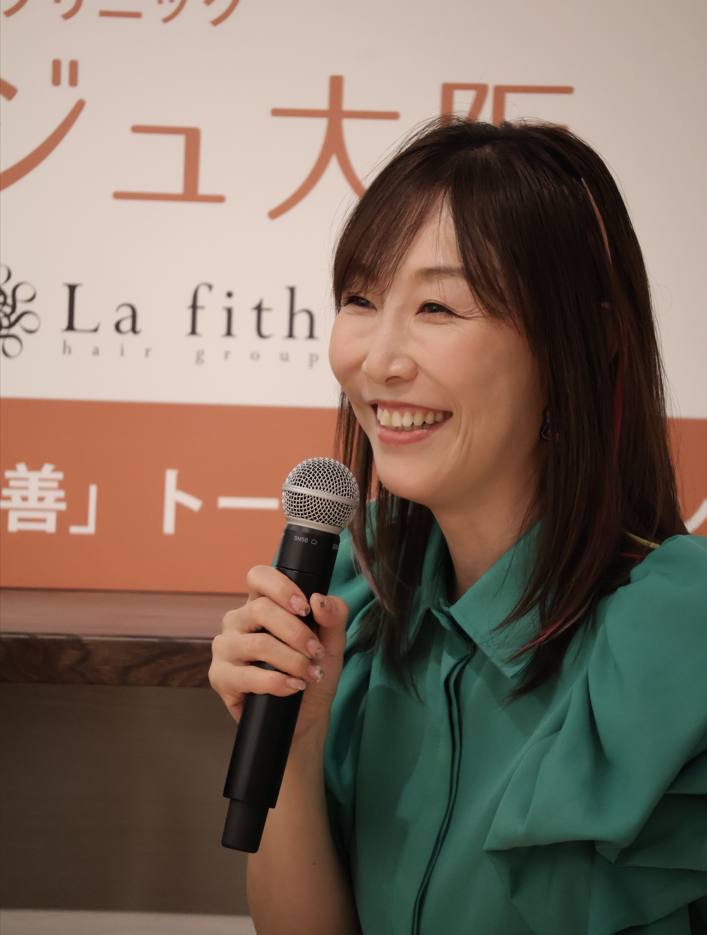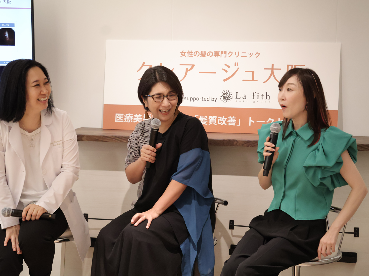 昨今は働いているお母さんがとても多いですよね。わたしは一番下の子が4歳で、周りには20代のお母さんもいる。そこに並びたいわけではないですが・・・若作りをしたいわけではないのですが若々しく、自分が持つ本来の“女性らしいイキイキとした綺麗さ”を発揮したいなと思います。髪の治療と聞くと男性向けの植毛などが思い浮かんで、クリニックに通うことに抵抗があったり、恥ずかしいと思うかもしれないですが、今日クレアージュ大阪に来て、サロンのように綺麗なところで驚きました。ここなら自分磨きのために通おうと思いました。