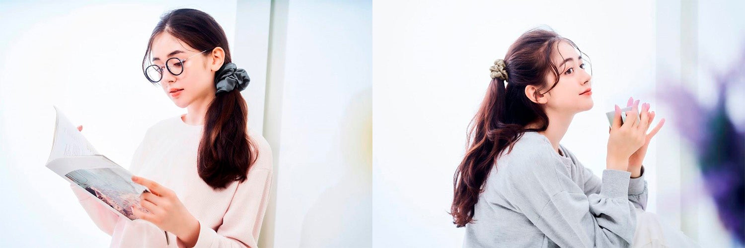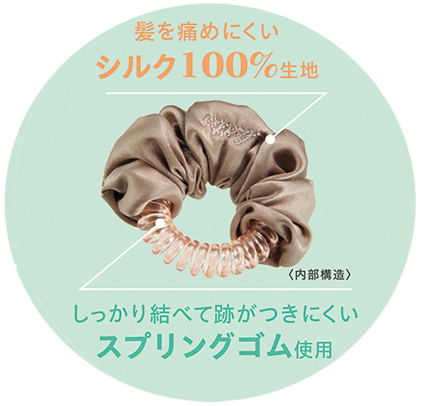 スプリングゴム内蔵でしっかりと髪を束ねながらも、使用後の跡が気にならないからいつでもササっとスタイリング!
