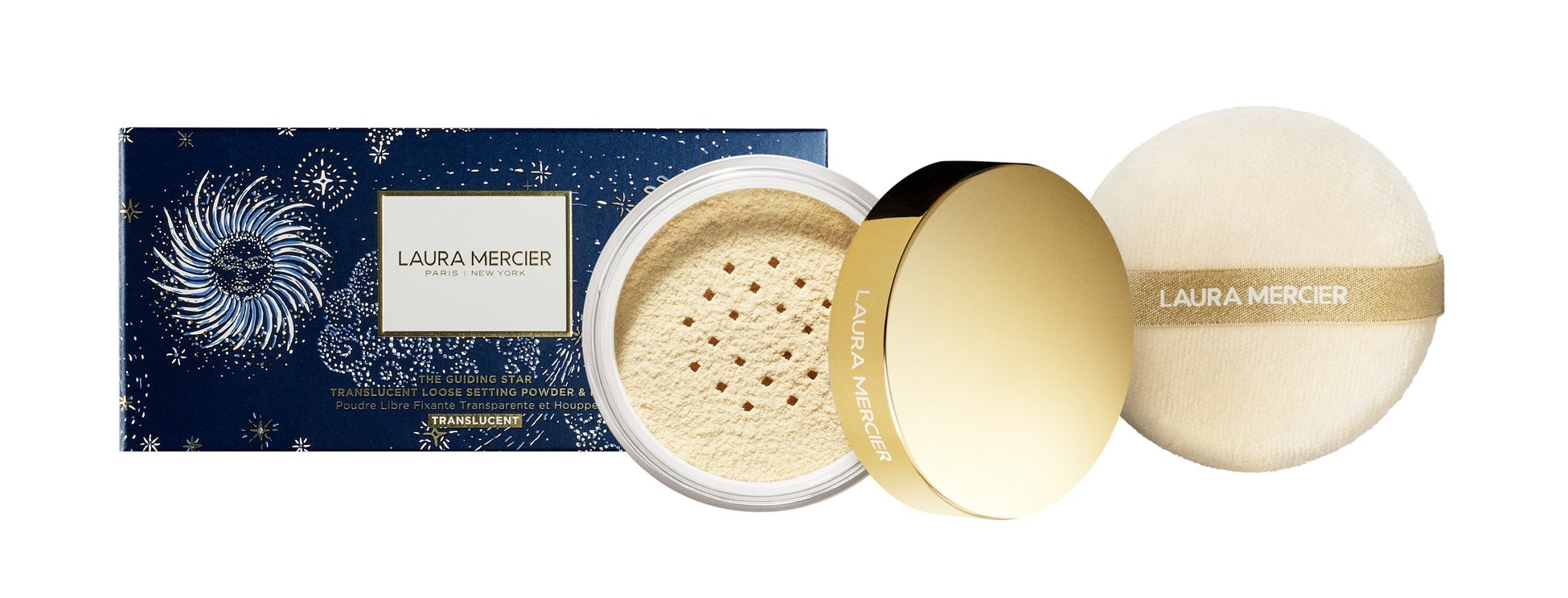 ローラ メルシエの不動の人気商品、ルースセッティングパウダートランスルーセントが星空をイメージしたホリデー限定パッケージに身を包み、ゴールドのリボンをあしらったスペシャルなヴェロアパフとセットで登場します。メイクしたての美しさをキープするセット力と、何もつけていないかのような自然な仕上がりで透明感ときめ細かさをプラスする商品の実力を、スペシャルなパフと共にお試しください。