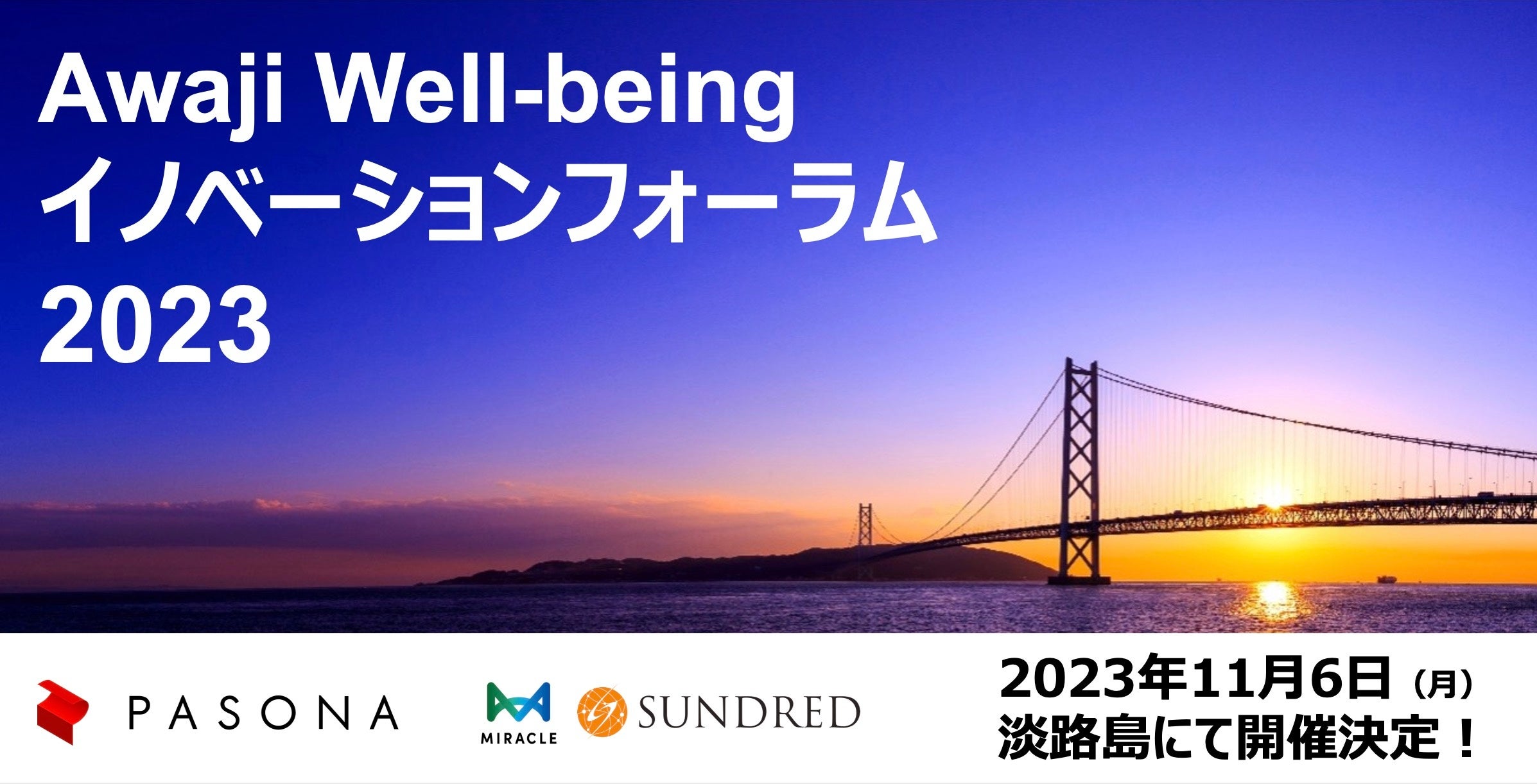 SUNDREDはパソナグループが開催するWell-beingをテーマにした複合型イベント「Awaji Well-being Week 2023」の一環として、同イベント、ならびに11月7日の「Awaji Well-beingビジネスコンテスト」にも共創パートナーとして参画し、SUNDREDの新産業共創プロセス、リビングラボ開発・運営ノウハウ、インタープレナーのコミュニティ、MIRACLE(Medical & Healthcare Innovation Realizing CircLE)の有識者ネットワークを活用し、サイエンスをベースにしたWell-being産業のコンセプトづくりや、淡路島でのWell-being産業のインキュベーションを推進します。はじまりの島、淡路島から、SDGsおよびその先の、一人ひとりの、社会の、地球のWell-beingが実現するリジェネラティブな社会の実現を目指します。