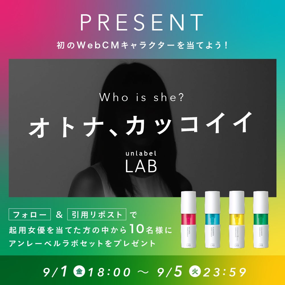 JPSLAB株式会社(本社所在地:東京都港区、取締役社長:永井 博)は、アンレーベルラボの集中美容液シリーズ、初のWebCMを9月6日(水)より展開いたします。公開に先立ち、SNSフォロワー約190万人を持つ人気若手女優を起用したティザービジュアルを先行公開いたします。