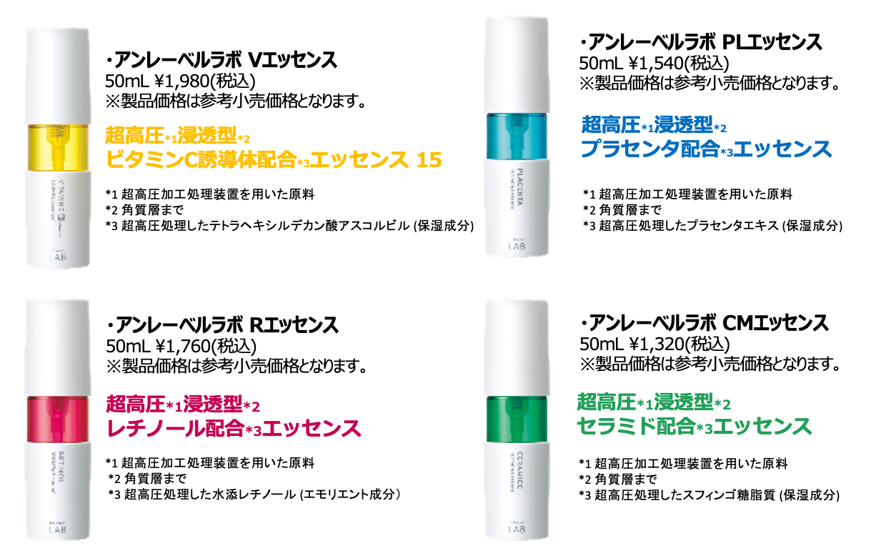 アンレーベルラボは肌悩みに集中アプローチし、素早く、深く、ダイレクトに浸透※1させる4種類の美容液を展開しています。