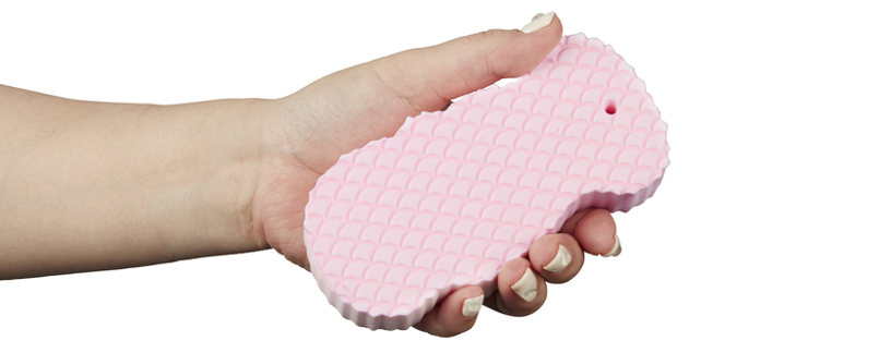 お肌に負担をかけずに不要な角質をやさしく落とす新感覚のあかすりスポンジ。