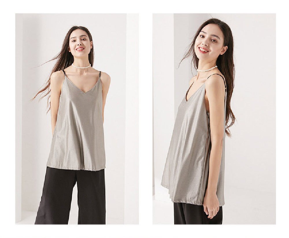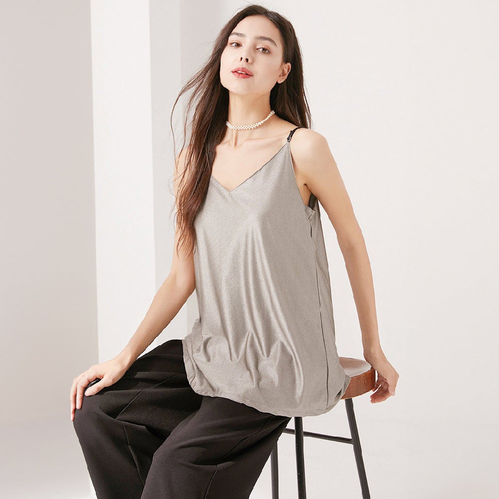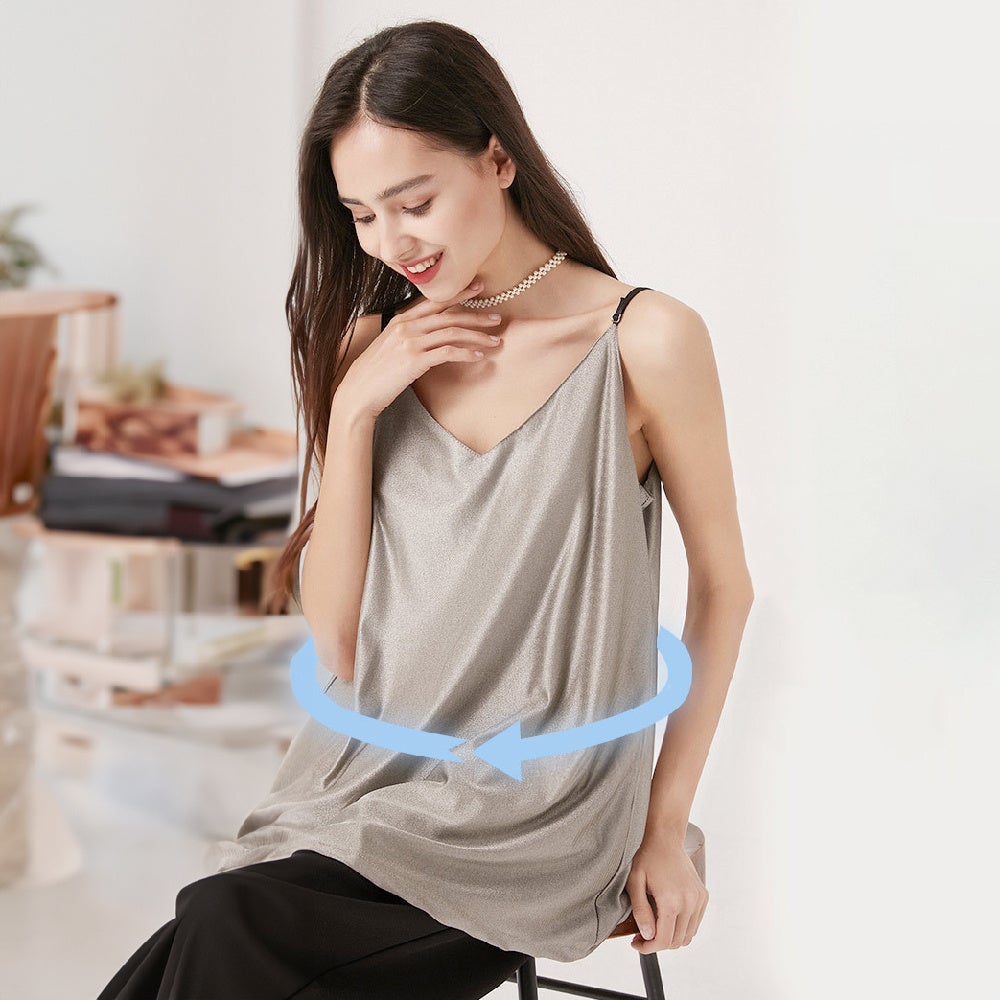 InsuCamiは外層で電磁波をしっかり防ぎつつ、内層は柔らかく肌に優しく吸汗性にも優れています。