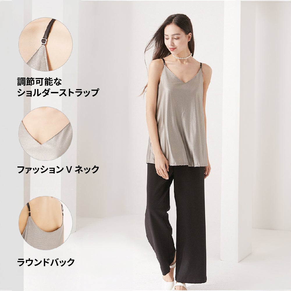 InsuCamiはお洒落なVネックデザインの正面と、背面の丸襟デザインが特徴。
