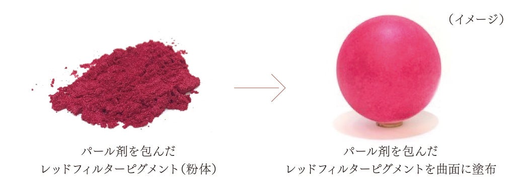 パール剤をレッドフィルターピグメントで包むことで、濁りの無い澄んだ発色を実現します。
