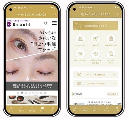 ⑥便利なメニュー機能:メニュー内でマイページや購⼊履歴、再注⽂などの情報をすぐに確認できます。 ※アイラッシュガレージ新公式アプリLPページ(https://www.eyelashgarage.jp/pickup/app_renew)