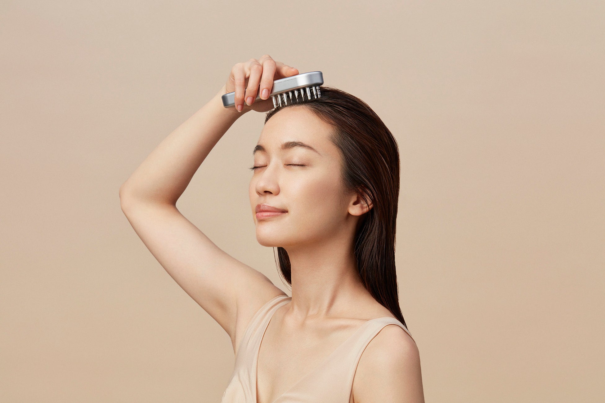 クッション性のある独自設計の3Dフィットピンが頭皮やフェイスラインのカーブに沿って