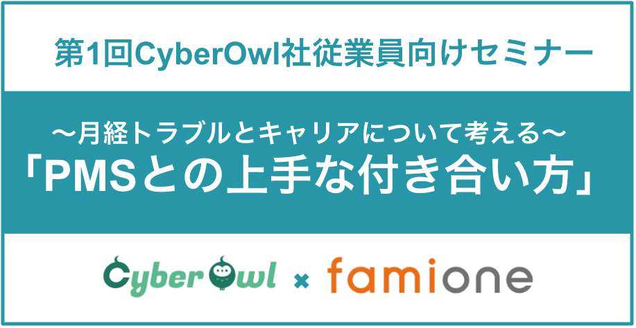 今回はファミワンの不妊症看護認定看護師の西岡が生理・PMSの基礎知識や上手な付き合い方について講師を行い、CyberOwl社の従業員のヘルスリテラシー向上と月経トラブルとキャリアの両立について考えていただく機会となりました。次回は10月18日を予定しています。