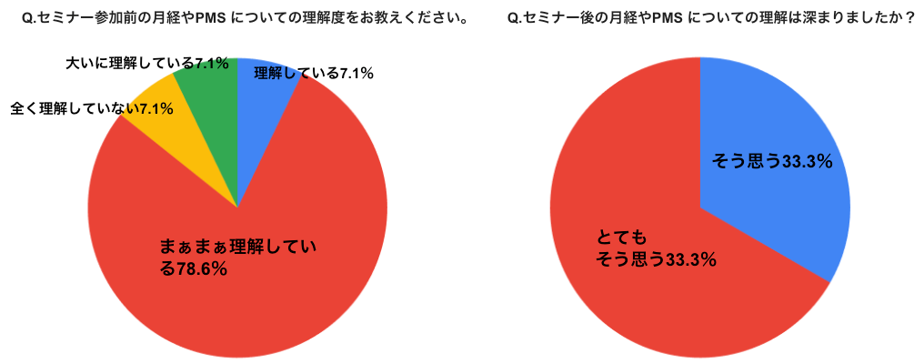 ・自分がどうやってPMSと付き合っていくかの選択肢も理解できましたし、他の人が悩んでいる面も知ることができて有意義でした。