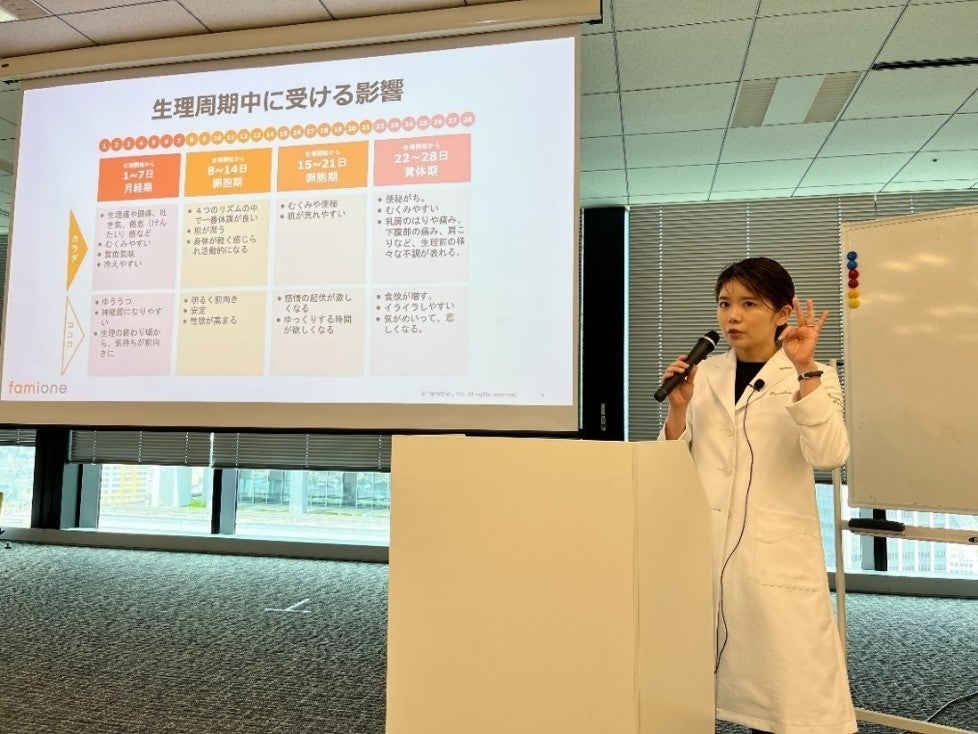 福利厚生プランとしてセミナーを年間4回予定しており、第1回目として2023年7月に「PMSとの上手な付き合い方」と題したセミナーをオンライン・オフライン併用のハイブリッド形式で開催しています。