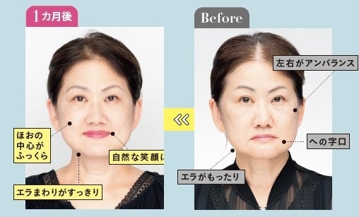 「たるみリフト」メソッドは1日10秒程度。基本メソッドを1か月続けた50代モニター女性が、まるで別人のように若返ったという報告も。ほうれい線やあご、目元が引きあがっただけでなく、顔全体に若いころのような可愛さがよみがえりました。