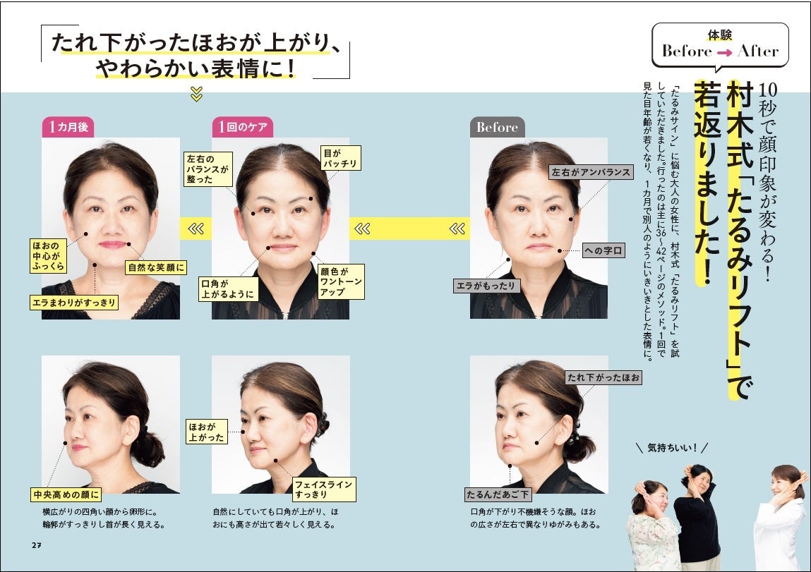 同書では、体をほぐして全身を整えることで顔のたるみをリフトアップする方法や、村木さんが毎日実践する効果絶大のデイリーケアも公開。何歳からでも、時間も力もお金もかけずに、むしろ10年前より可愛くなれる「たるみリフト」。男性のマスク老け解消にもおすすめです。