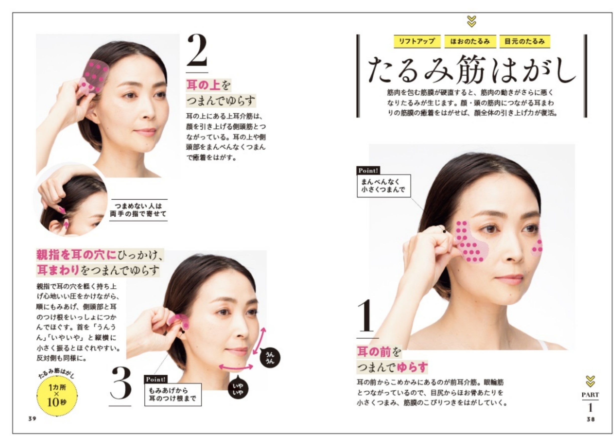 耳やこめかみをつまんで顔を瞬時にリフトアップ!