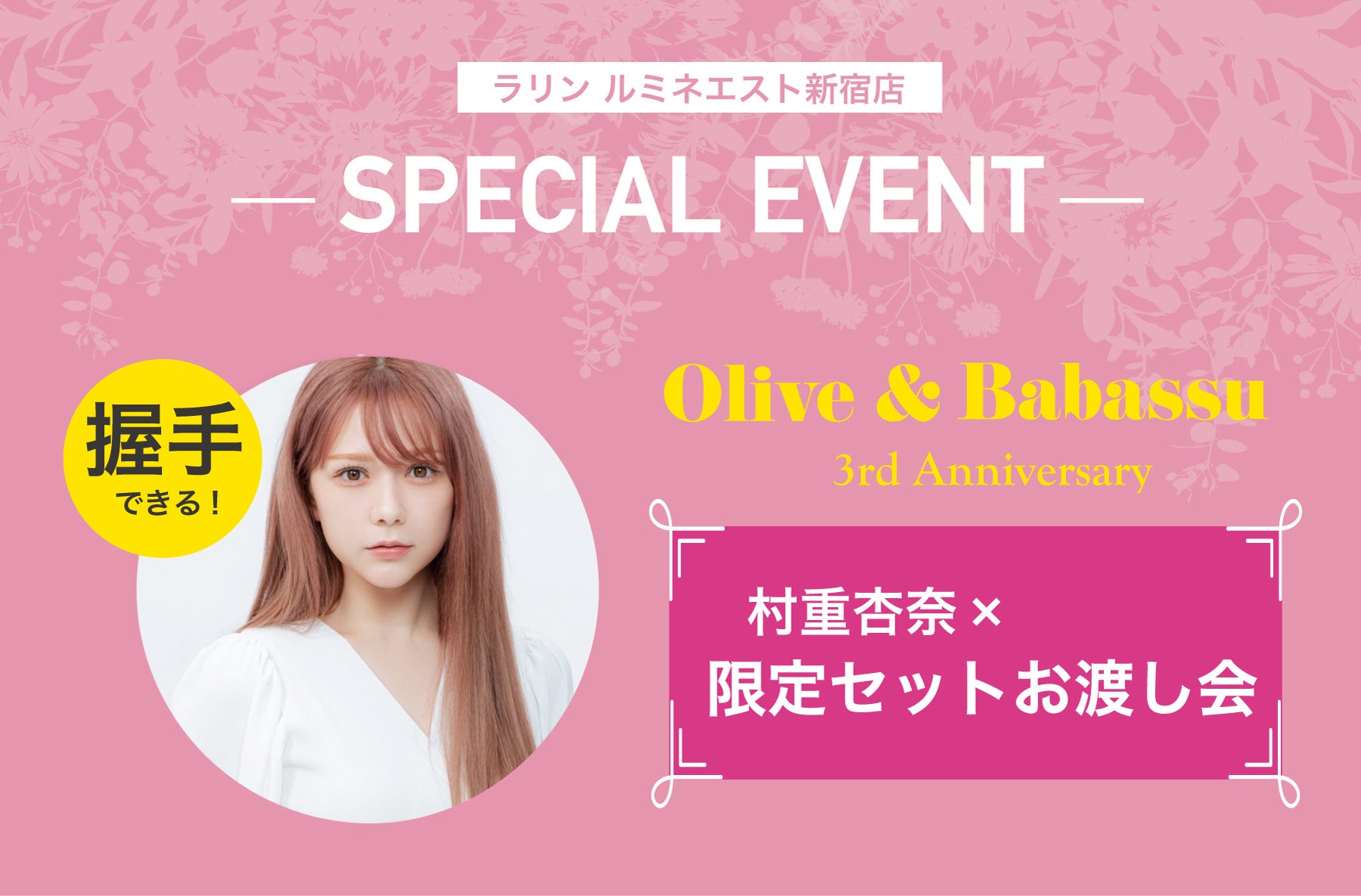 100%ヴィーガンコスメ「オリーブ&ババス」誕生3周年を記念し、2023年9月14日(木)にルミネエスト新宿にて、村重杏奈さんによる「握手&お渡し特別イベント」を開催いたします。