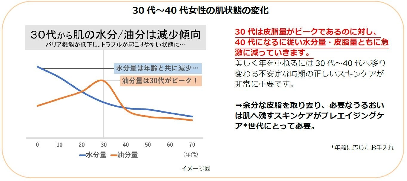 50年以上、エイジングケア*に着目した商品を提供しているナガセビューティケァの歴史とノウハウを生かし、30代からのプレエイジングケア*世代に向けたスキンケアを提案します。