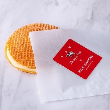 牛乳石鹸のロングセラーブランド「カウブランド赤箱」とミルクを知り尽くしている「MILK MARCHĒ」の期間限定コラボレーション。赤箱には高品質のミルクバターが使用されており、そのバターをクリームに使用したゴーフレットを「MILK MARCHĒ」で作りました。ぜひ一度ご賞味ください。横浜赤レンガ倉庫2号館1Fの「MILK MARCHĒ」でお買い求めいただけます。