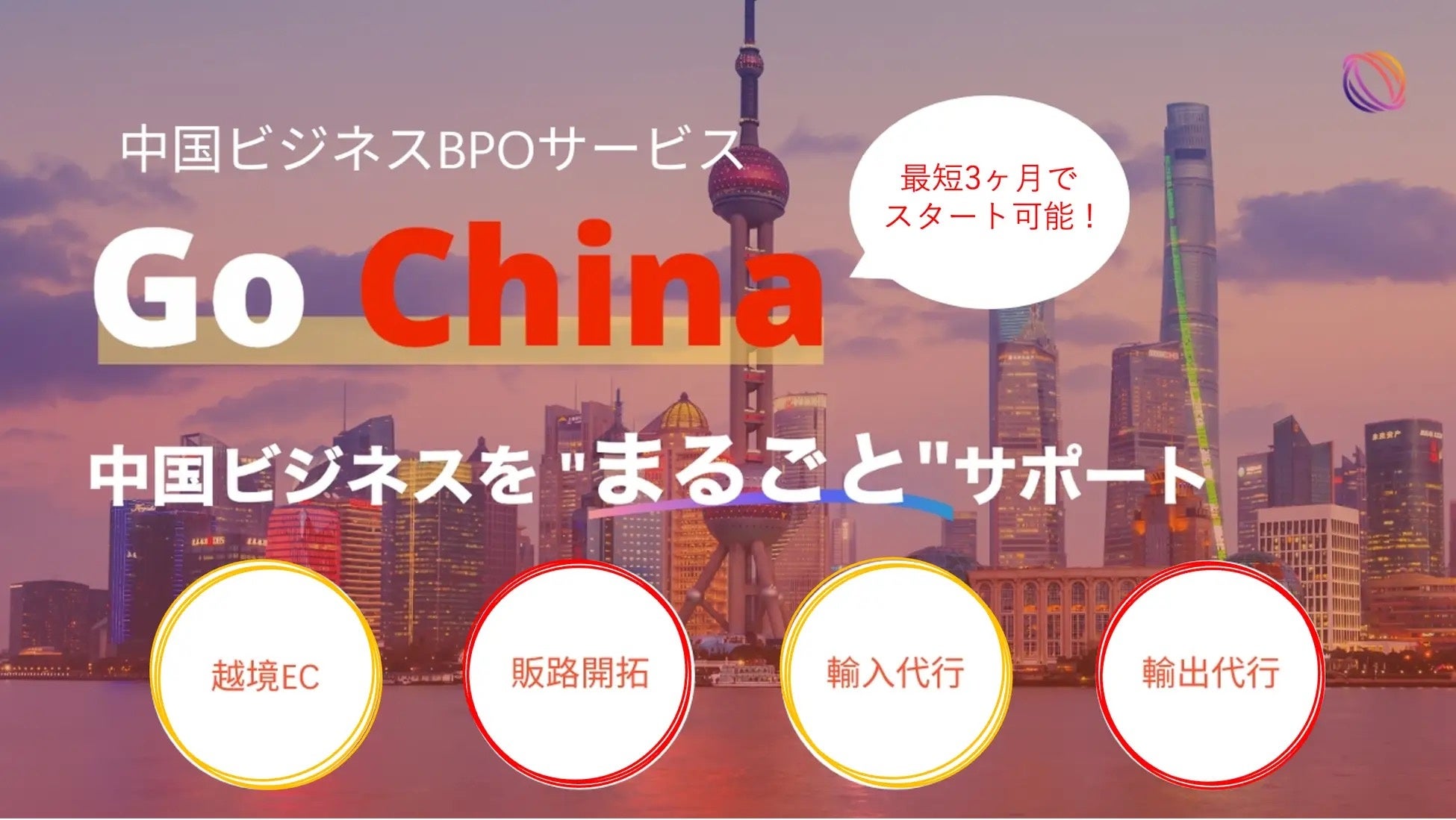 GoGlobalが提供する中国ビジネスBPOサービス”GoChina”をご利用いただければ、中国ビジネスの経験がなくても心配要りません。ニーズに応じたビジネス領域での支援を行いますので、中国マーケットへの輸出入に関するご質問、サービスについて知りたいことなど、何でもお気軽にご相談ください。