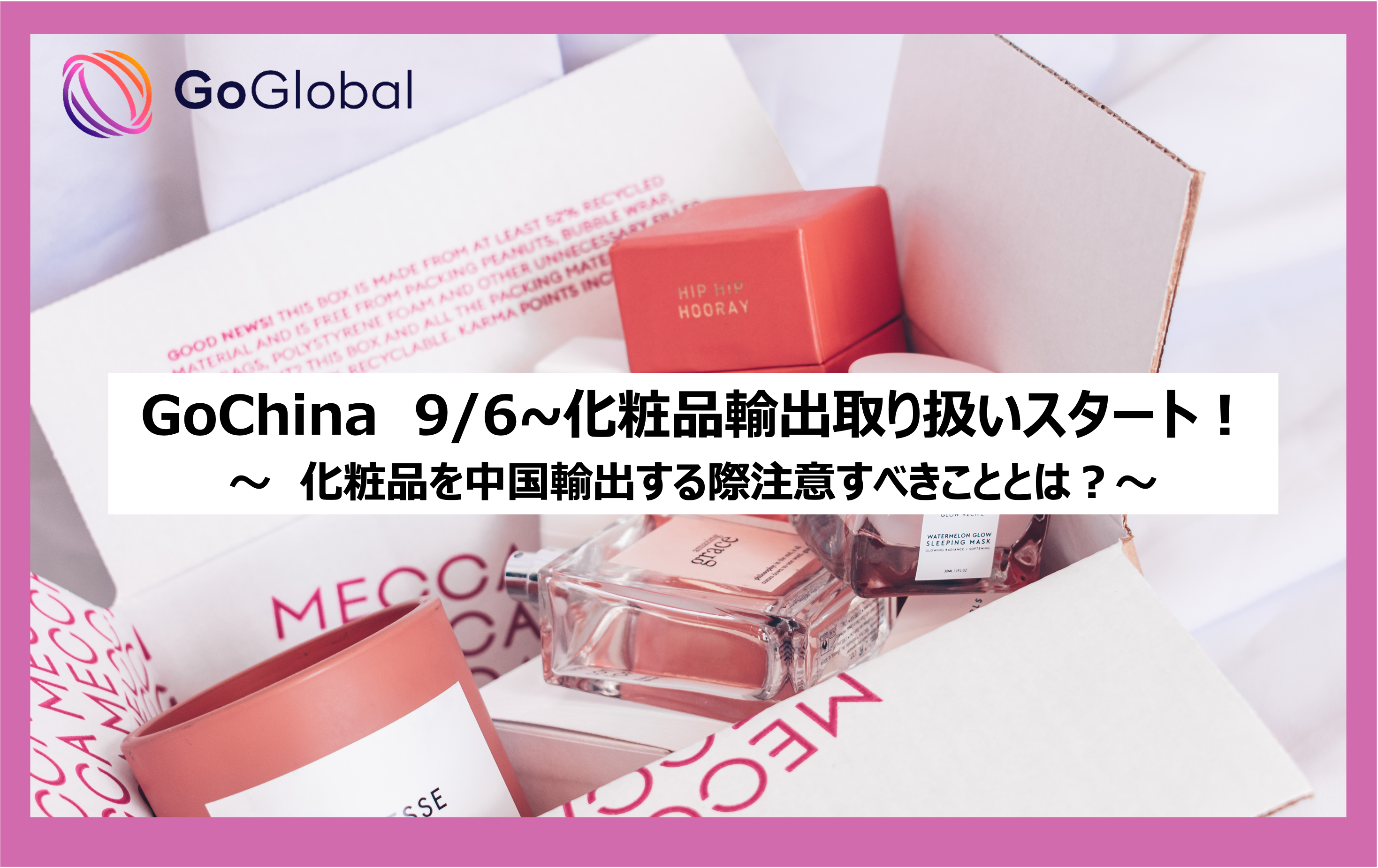 GoGlobal株式会社(港区、代表取締役;渡辺さち、沖室晃平)は、日本企業の中国マーケットへのビジネス進出をフルサポートする、中国ビジネスBPOサービス「GoChina(ゴーチャイナ)」にて、9/6より新たに日本の化粧品の輸出入の取り扱いをスタートいたします。
