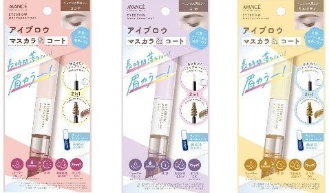 ふんわり垢抜ける眉毛に仕上がるアイブロウマスカラと、水や汗から眉メイクを守るアイブロウコートが1本になっています。アイブロウマスカラは、ニュートラルなブラウンカラーの3色展開で、髪色や肌色にあったカラーをお選びできます。