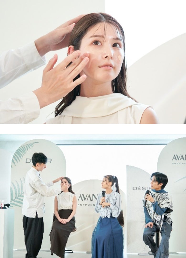 当日は、2023年9月5日(火)に発売を開始する、新コスメブランド「DÉSIR(デジール)」の「BPクリーム 輝き美肌(ツヤタイプ)」と「BPクリーム ふんわり美肌(マットタイプ)」についてPR・商品開発担当よりご紹介したほか、ヘアメイクアップアーティストの石川ユウキさんをお迎えし、ベースメイク講座を開催。さらには、フォロワー数、1400万人超の美男美女兄妹インフルエンサーおおしま兄妹さんも登壇し、最近のメイク事情についてお話いただきました。