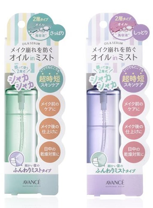 肌を引き締めるウォーターセラムとつややかな肌に導くオイルの2層式オイルinミスト。皮脂によるテカリや化粧よれが気になる方のための「さっぱり引き締めタイプ」と、メイク後の肌が乾燥崩れしやすい方のための「しっとりうるおいタイプ」の2種類を展開。