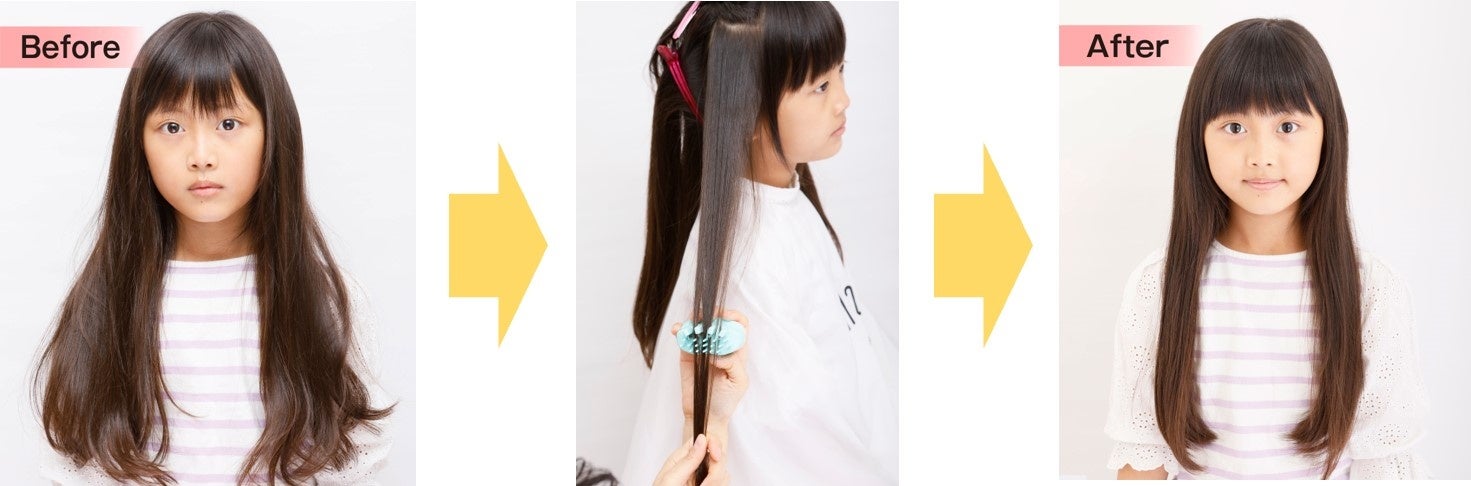 「クシでとかす」・「毛束を挟む」・「カットする」の3ステップで、簡単且つ安全にカットし、自然な仕上がりを実現します。お子様の前髪カットにもお使いいただけます。