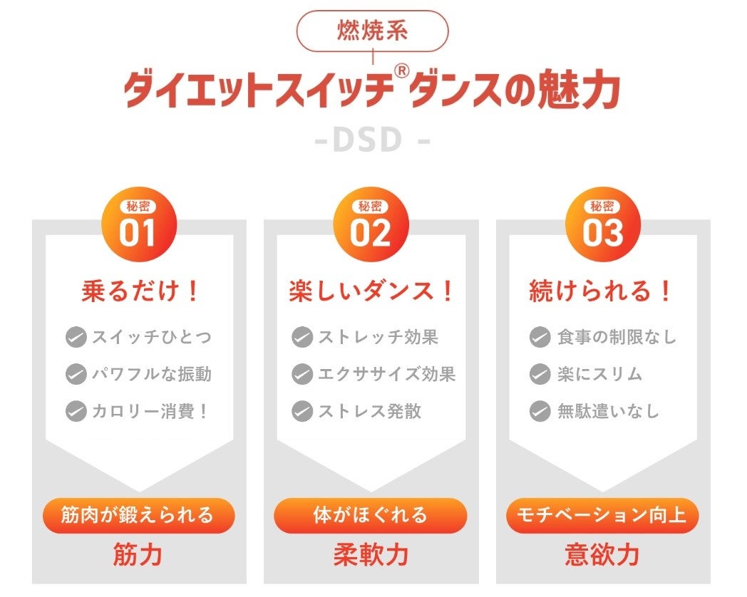 ダイエットスイッチ®ダンスは3分メソッド。3大コアの肩回り(肩甲骨)・お腹周り(体幹)から全身までをたった3分のオリジナルダンスメソッドと3Dスーパーブレードの振動でダブルのアプローチ!!