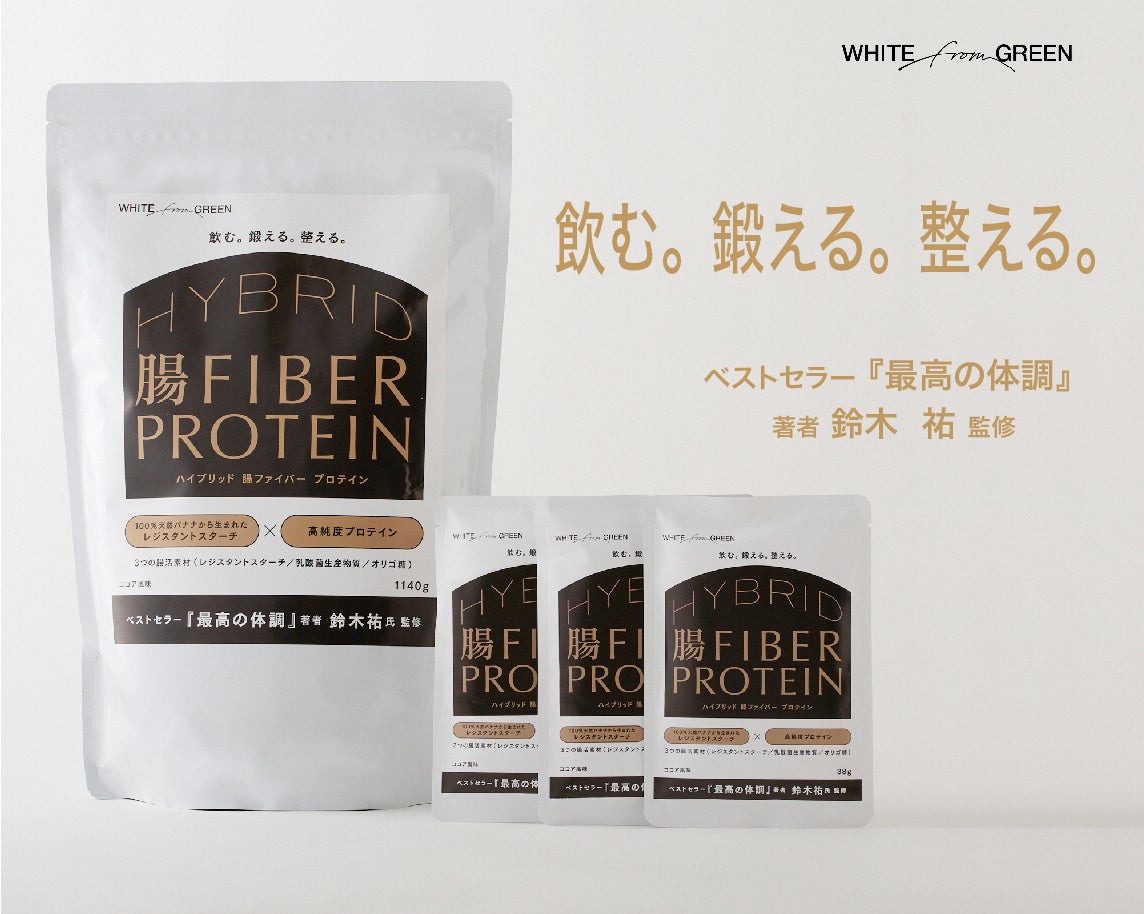 累計書籍販売数約70万部を記録するサイエンスライター鈴木祐と株式会社white from green(本社:東京都目黒区、代表取締役:三上 眞、以下wfg社)は、鈴木祐が長年のリサーチや自身の摂取経験を通して、タンパク質から食物繊維、腸活素材に至るまで各素材品質と配合バランスにこだわり、日本初(※1)のバナナ由来レジスタントスターチと乳酸菌生産物質をダブル配合した『ハイブリッド腸ファイバープロテイン』を共同開発し、9月6日から販売を開始します。