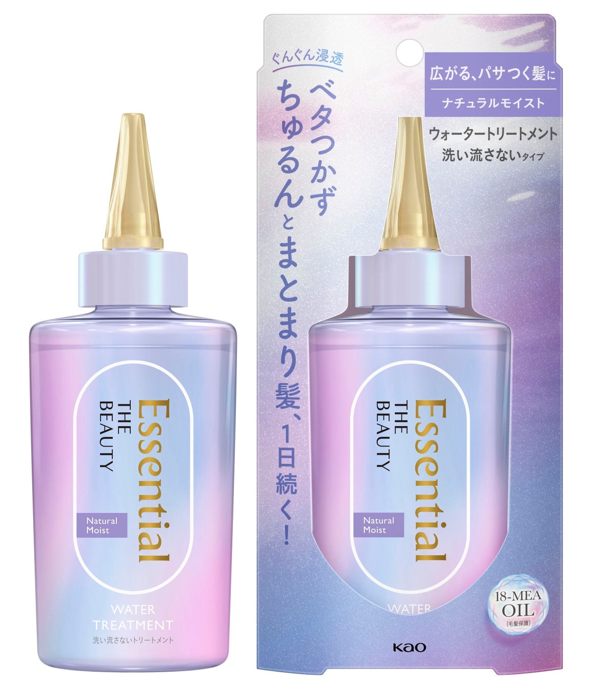 そしてこのたび、2023年11月4日より、『エッセンシャル ザビューティ ウォータートリートメント』から“ナチュラルモイスト”タイプを新発売します。広がる、パサつく髪に向けた処方設計により、まとまり髪が1日続きます。また、従来品については、 “EXスムース”タイプとしてデザインをリニューアルします。