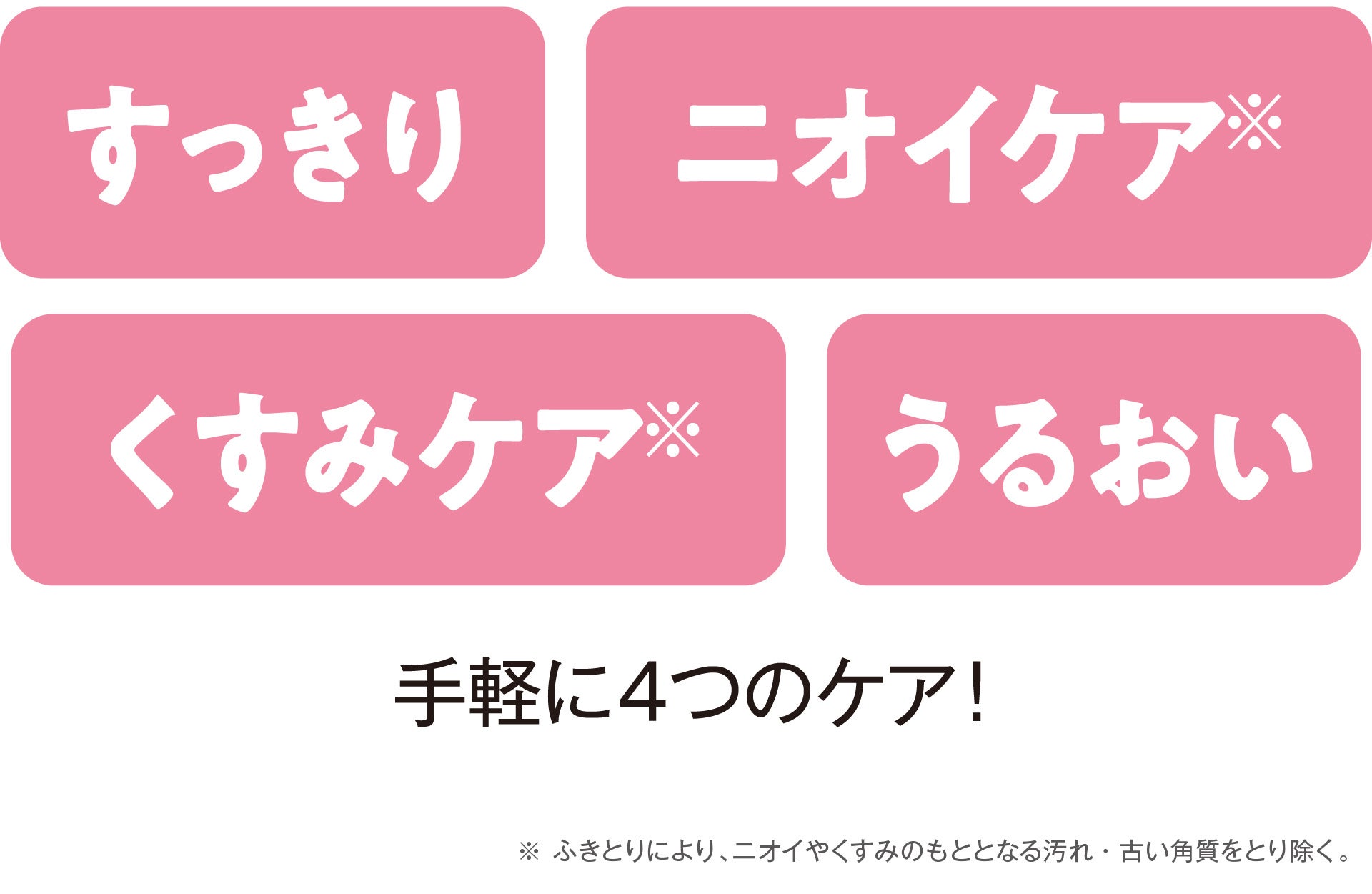 VIO のニオイやくすみのもととなる汚れ・古い角質をふきとりながら、同時に美容ケアも!