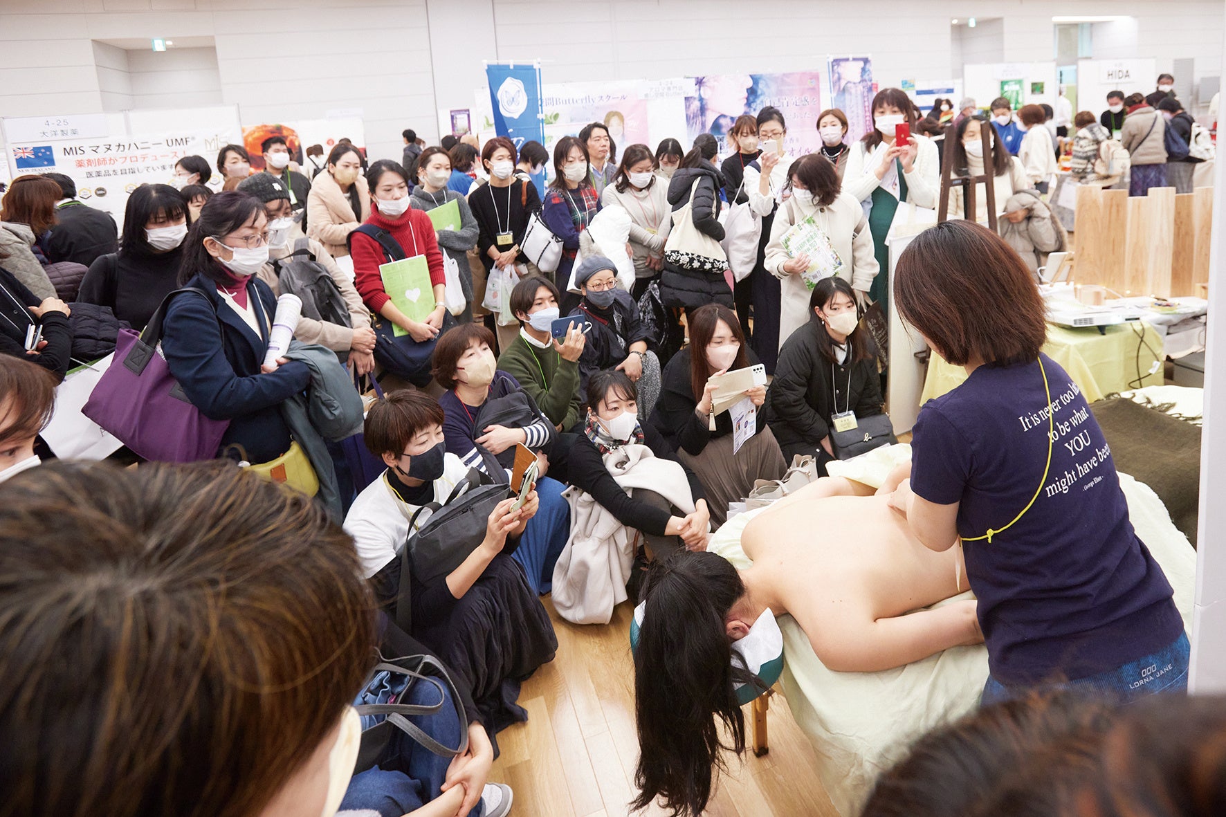 また、サロンやショップへの仕入れ、商品開発の相談など、出展各社との商談により、ビジネスの幅を広げることが可能です。さらに、マッサージや整体、占い、ヒーリングなどのブースでは、一流講師・セラピストの施術を受けることができます。