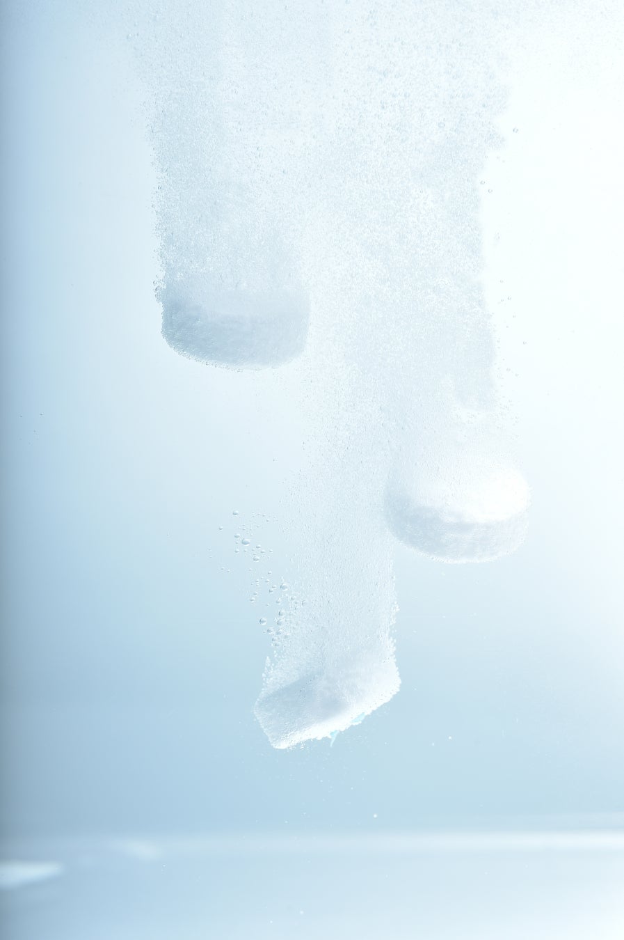 無香料・無着色・塩素中和。追焚きをしても24時間濃度が持続する設計です。※重炭酸イオンがお湯にしっかりと溶け込むためには、中性重炭酸タブレットであることが重要。