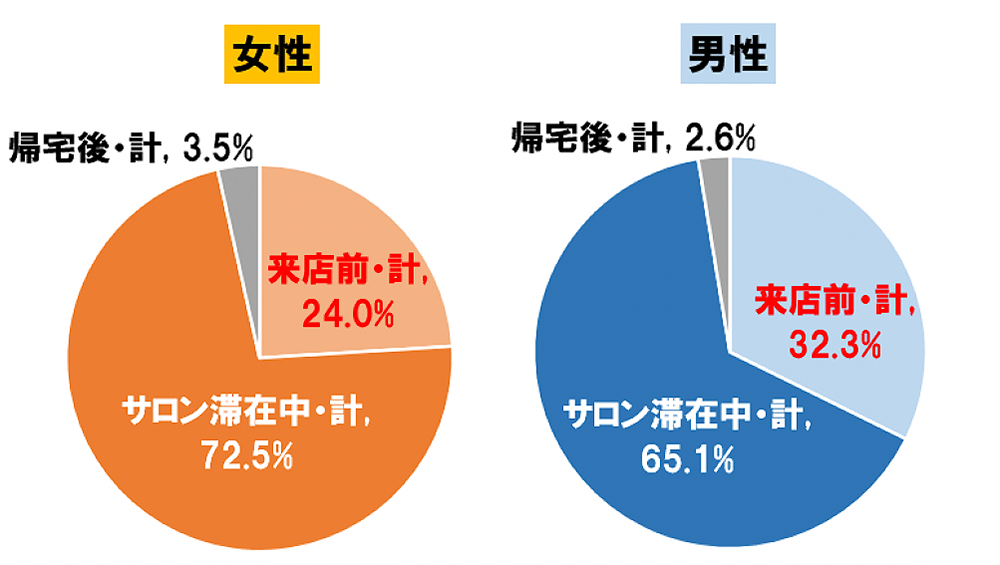 「来店前・計」は、女性が24.0%、男性が32.3%。男女共来店前に、2割以上の顧客がすでにサロンのリピート利用を決めている。