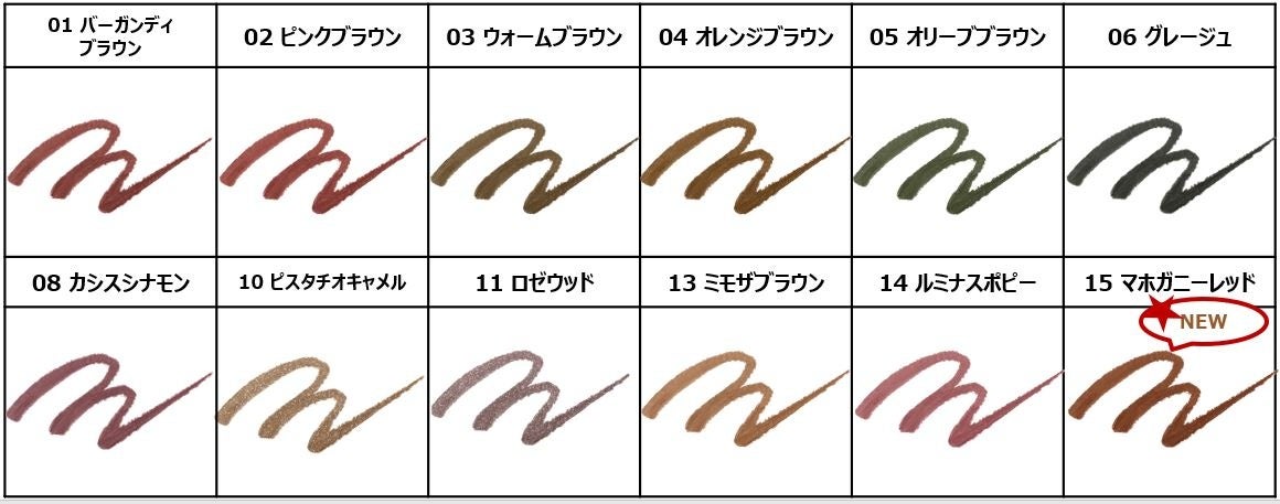 落ちにくく、するする なめらかな描き心地。自然に目もとが強調できます。今季の新色「マホガニーレッド」は、秋に似合うレッドニュアンスカラー。
