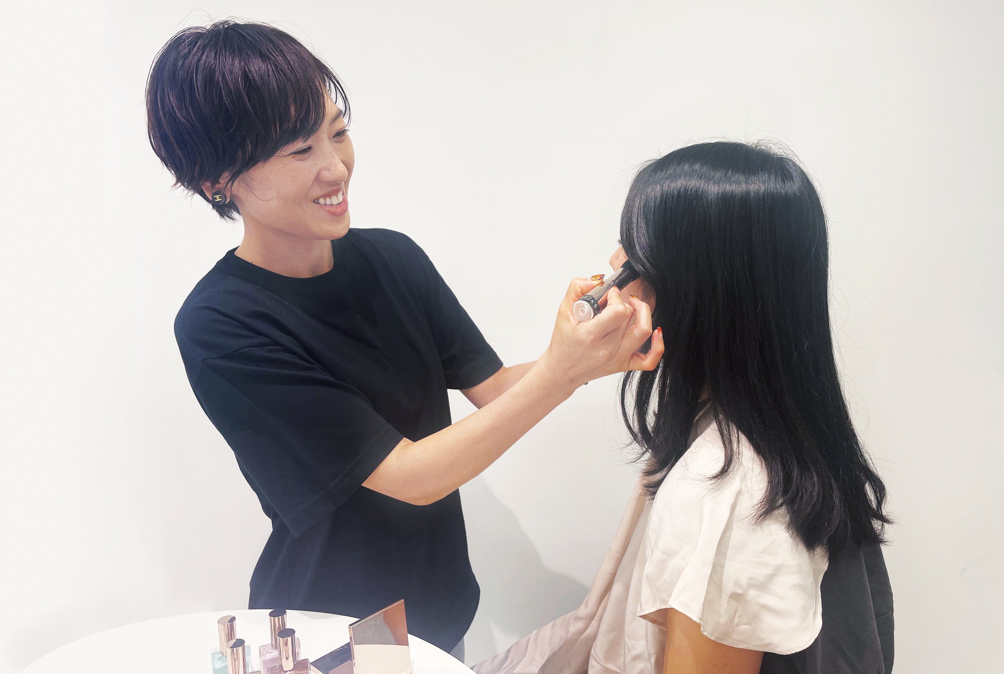 LUNASOLメイクアップアーティストが新ファンデーションの色選びをお手伝い。その後はメイクアップサービスも実施します。